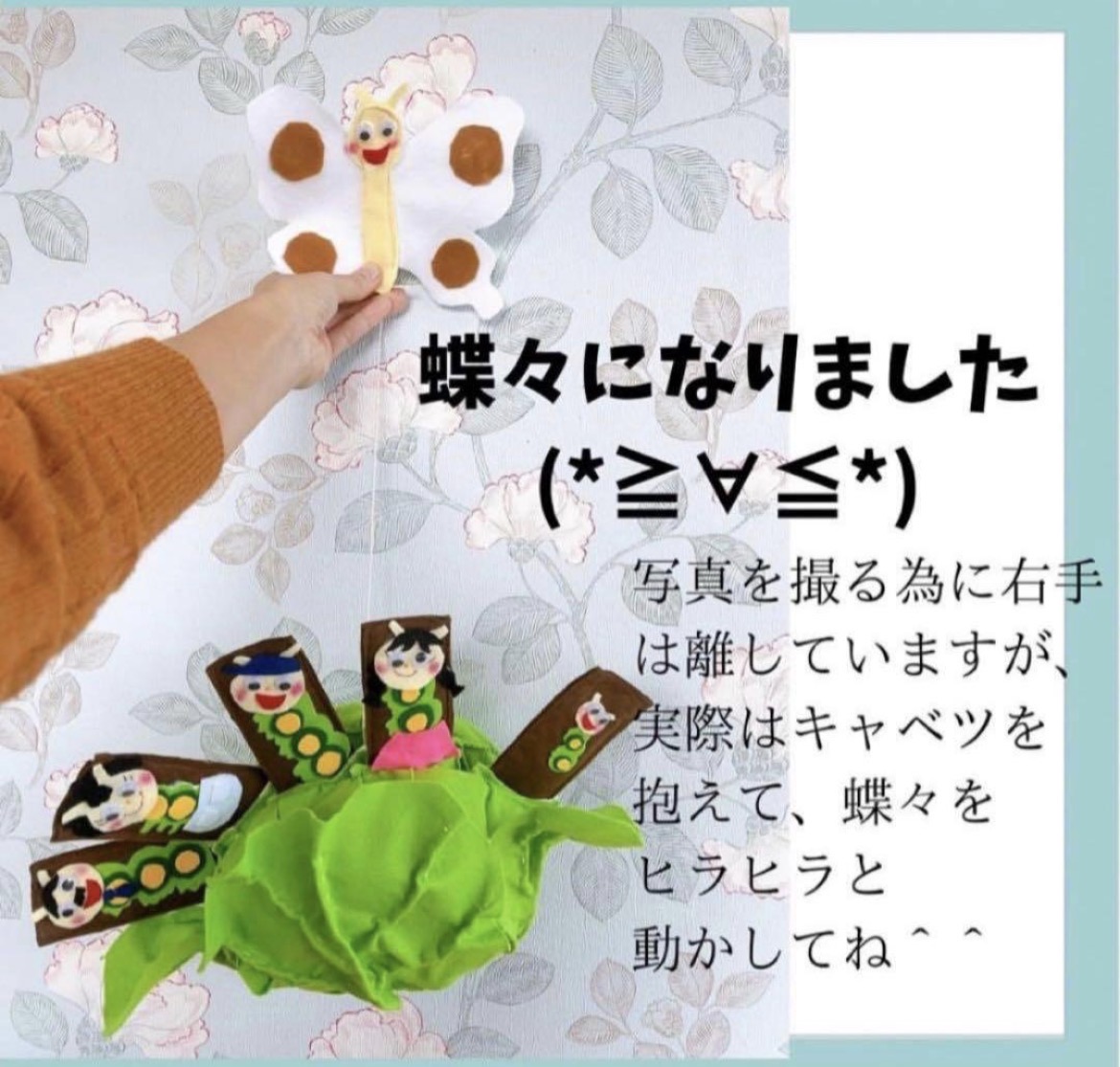 ①キャベツの中から青虫でたよ